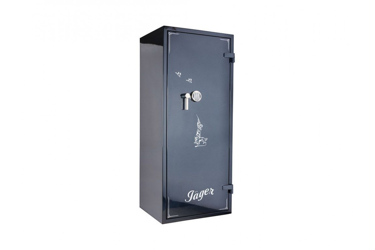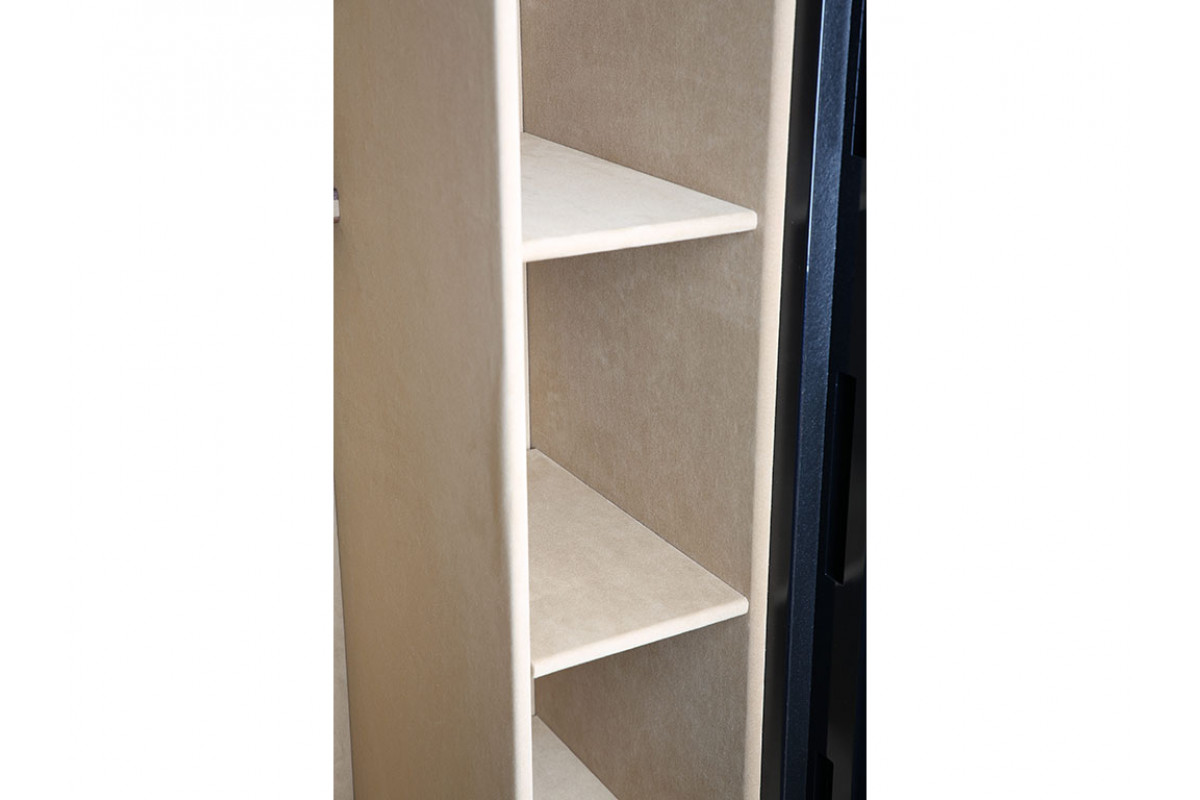 Сейфы серии JAGER создаются на базе серийной серии Гарант Евро и могут быть изготовлены как в исполнении для хранения оружия, так и для хранения документов, ценных вещей и многого другого. Внутреннее оснащение, цвет корпуса, рисунок определяются покупателем. Сейф сохранит содержимое от огня и взлома. JAGER 1670 - универсальный сейф для оружия и/или документов. КОНСТРУКТИВНЫЕ ОСОБЕННОСТИ: комплектуются электронными замками 3-х сторонняя ригельная система запирания защита замка и ригелей от высверливания и выбивания предусмотрена возможность анкерного крепления к полу съемные полки максимальное количество ложементов на 8 стволов ОТДЕЛКА: тип покрытия – лак; базовый цвет: черный с рисунком внутренняя отделка – алькантара (искусственное замшевое покрытие); базовый цвет: светло-коричневый под заказ возможно: замена алькантары на эко-кожу; изменение цвета покрытия и внутренней отделки; покрытие замка 24-каратным золотом; установка вертикальной перегородки и полок, выполненных из дерева