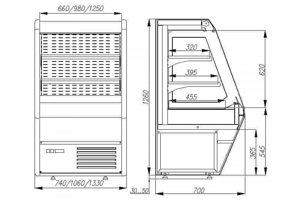 Холодильная горка гастрономическая Carboma F13-07 VM 0,7-2 0020 стеклопакет (Carboma 1260/700 ВХСп-0,7, цвет по схеме)