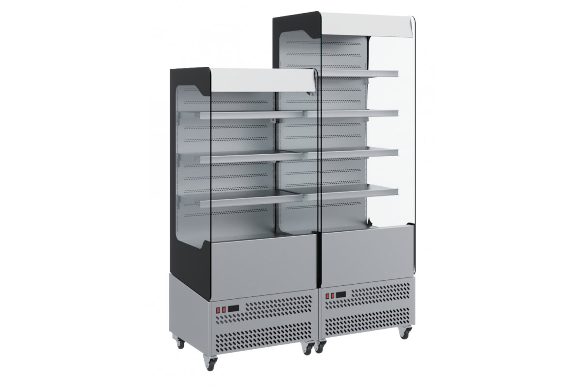 - Открытая выкладка – отсутствует фронтальное остекление, боковины из закаленного стекла со 100% обзором;