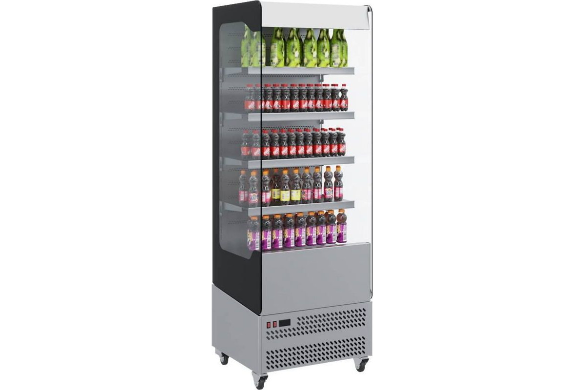 - Открытая выкладка – отсутствует фронтальное остекление, боковины из закаленного стекла со 100% обзором;