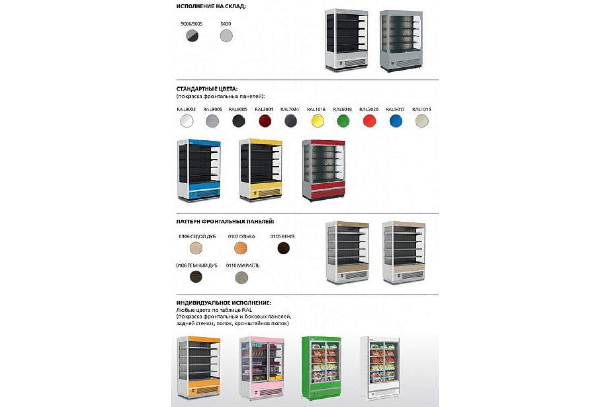 Холодильная горка гастрономическая Carboma FC20-07 VM 1,0-1 Light (фронт X0, цвет по схеме, фронт стандартный цвет)