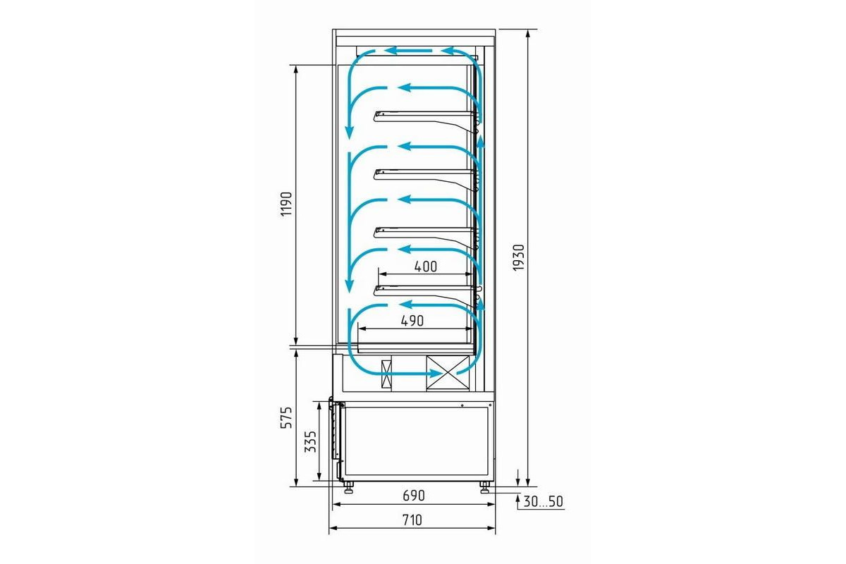 Глубина выкладки, мм: 490