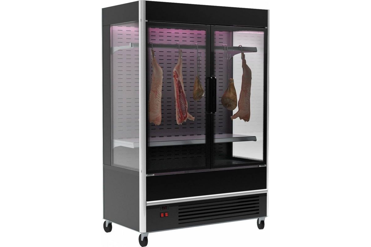 Холодильная горка мясная Carboma FC20-08 VV 1,3-3 X7 (распашные двери структурный стеклопакет) (9005 цвет черный)