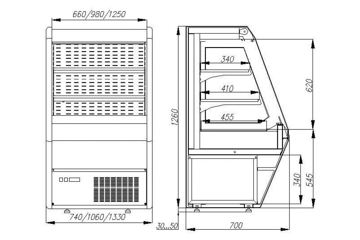 - положение витрины регулируется ножками на винтах;