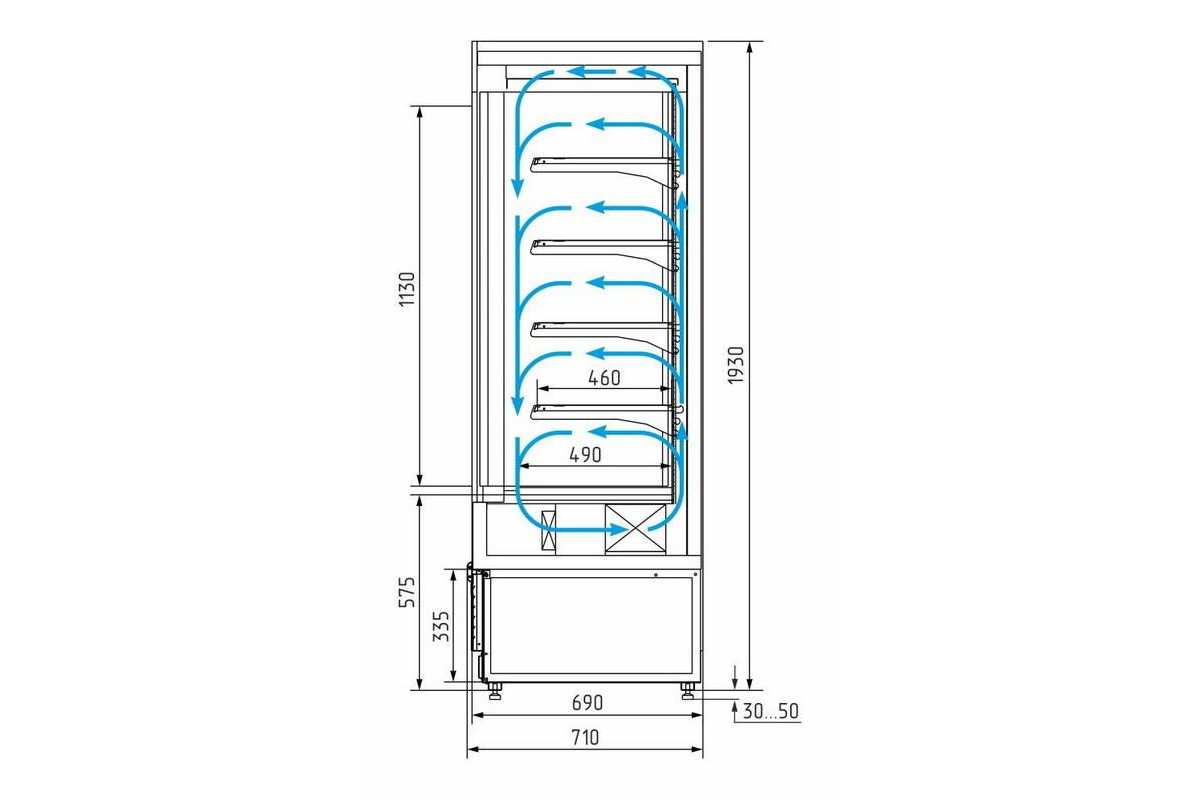 Холодильная горка гастрономическая Carboma F13-07 VM 0,7-2 0020 стеклопакет (Carboma 1260/700 ВХСп-0,7, цвет по схеме)