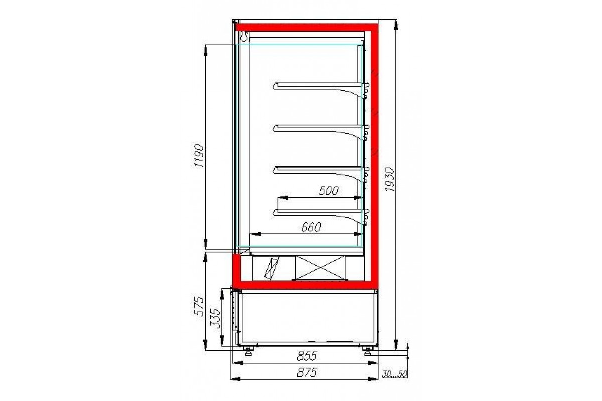 - глубина выкладки — 500 мм;