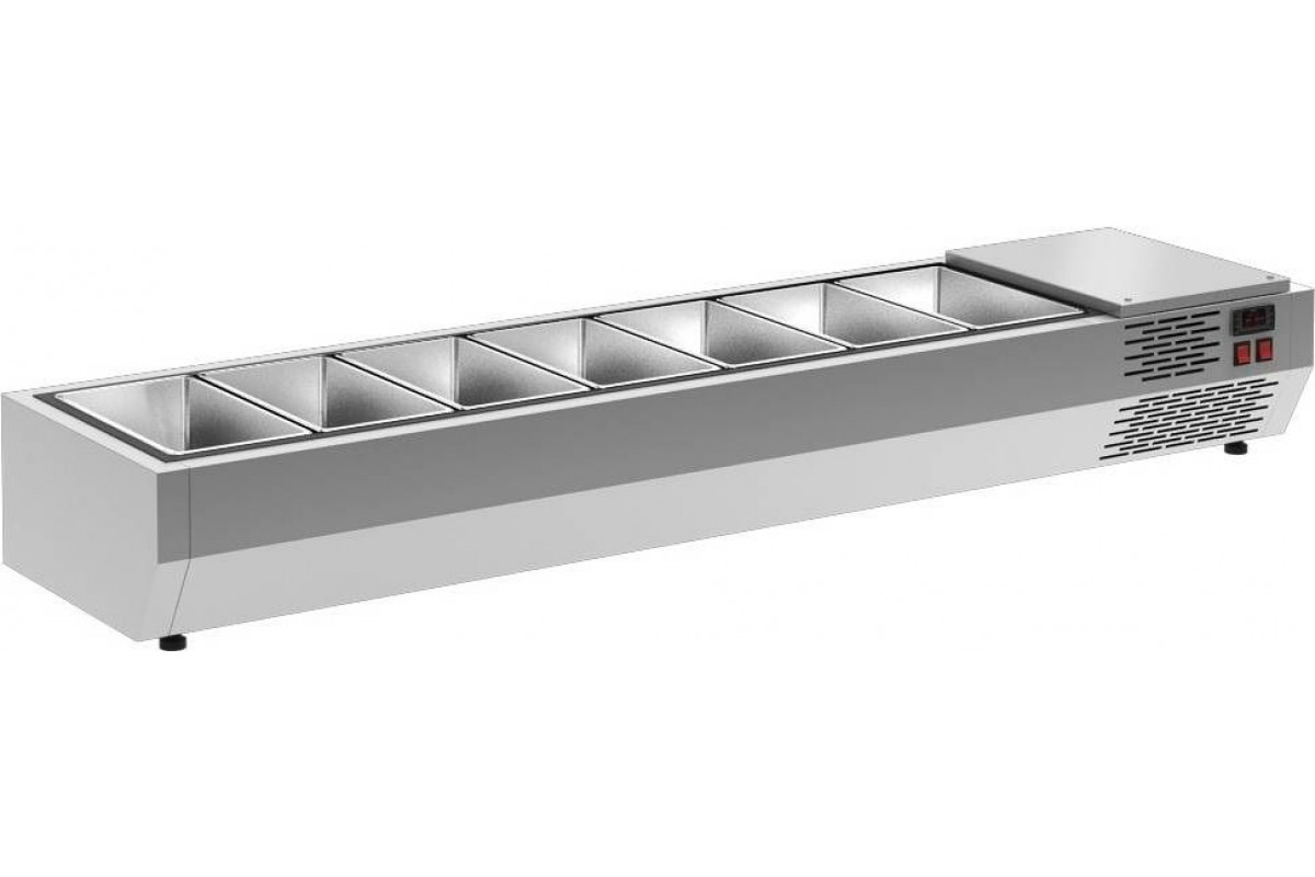 Витрина холодильная Сarboma A30 SM 1,0 0430 — открытая настольная модель, предназначенная для сохранения свежести ингредиентов, используемых при приготовлении салатов, пиццы. Также оборудование позволяет демонстрировать предлагаемые на выбор ингредиенты и продавать охлажденные продукты в гастрономических ёмкостях. Витрина для ингредиентов используется на предприятиях питания любого формата, в маркетах. Может использоваться совместно с холодильным, нейтральным столом, так и отдельно.