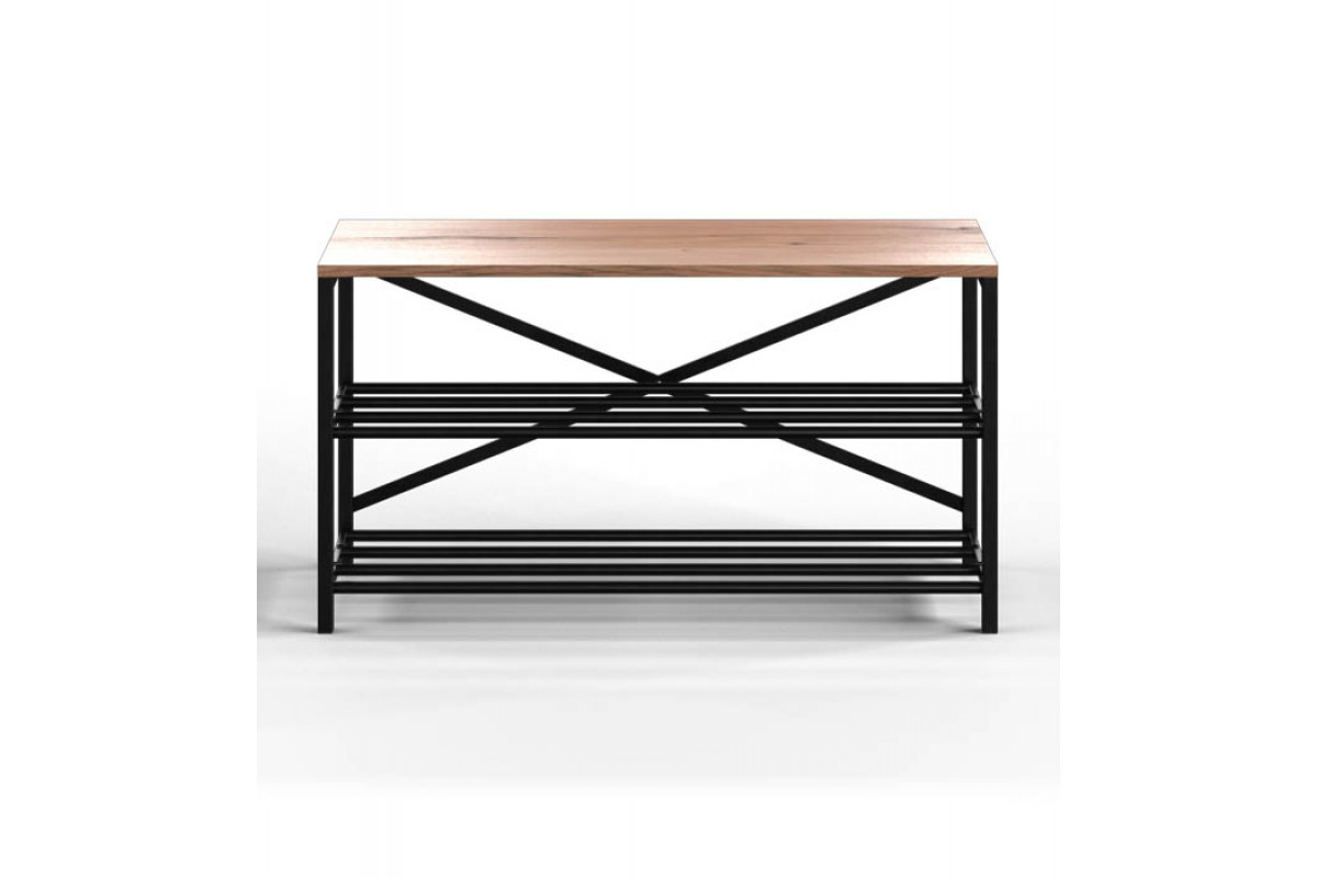 Обувница GUTTA 50х92х29 см, три полки — это стильное и функциональное решение для хранения обуви в стиле лофт. Каркас выполнен из качественной конструкционной холоднокатаной стали марки 08пс, что обеспечивает высокую прочность и долговечность изделия. Металлические детали покрыты порошковой краской черного цвета, которая защищает их от коррозии и придает обувнице элегантный внешний вид.