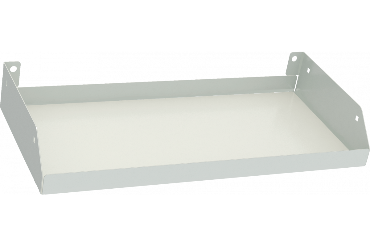Полка изготавливается из холоднокатаной стали толщиной 0.8мм. Выполнена в виде небольшой коробчатой конструкции с боковыми ребрами. Они добавляют конструкции дополнительную жесткость и исключают выпадение предметов.