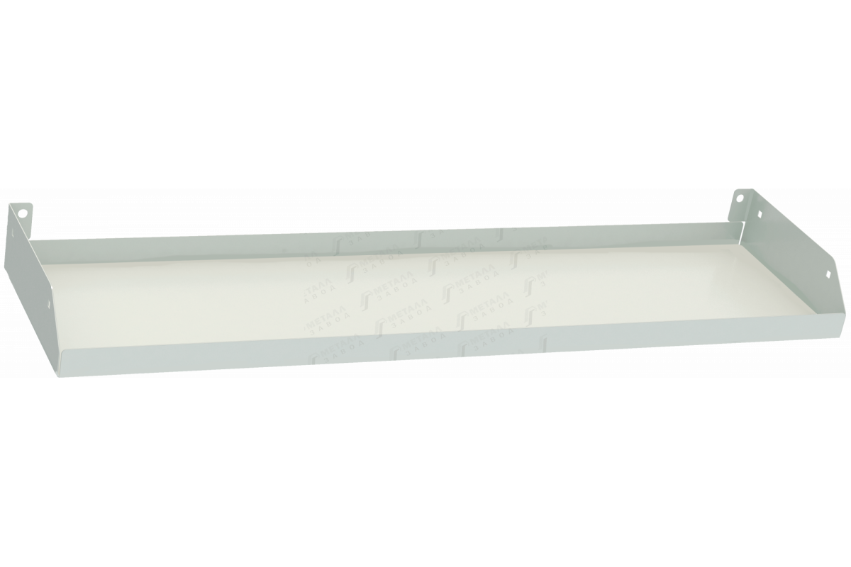 Полка изготавливается из холоднокатаной стали толщиной 0.8мм. Выполнена в виде небольшой коробчатой конструкции с боковыми ребрами. Они добавляют конструкции дополнительную жесткость и исключают выпадение предметов.