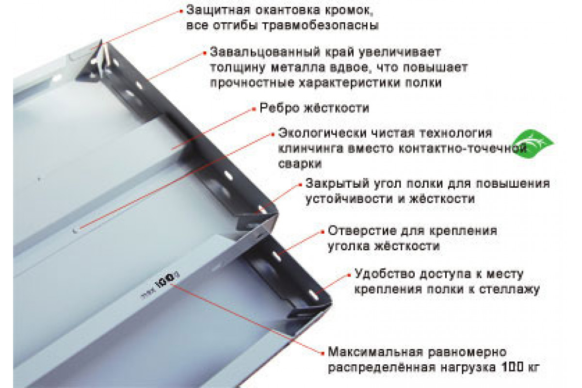 - Нагрузка на полку 100кг.