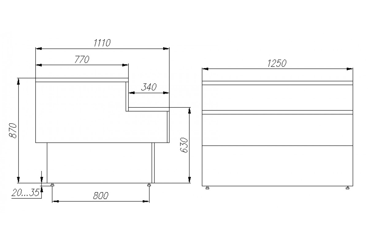 Неохлаждаемый прилавок Полюс П-1,25 Carboma GC110 – нейтральное торговое оборудование без хладоагрегата, предназначенное для оборудования рабочего места продавца в магазинах и кондитерских, булочных, отделах супермаркетов. Предназначен для размещения кофейных аппаратов, стаканчиков, пакетов для продукции, кассового аппарата.