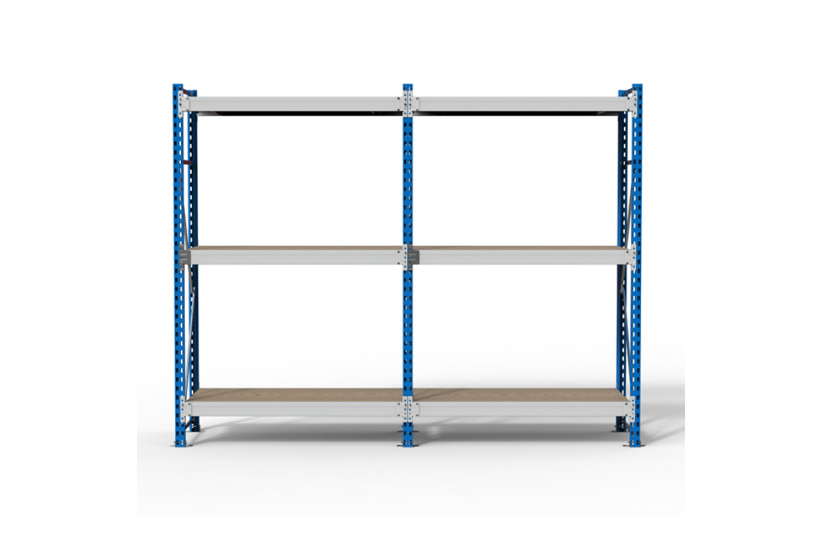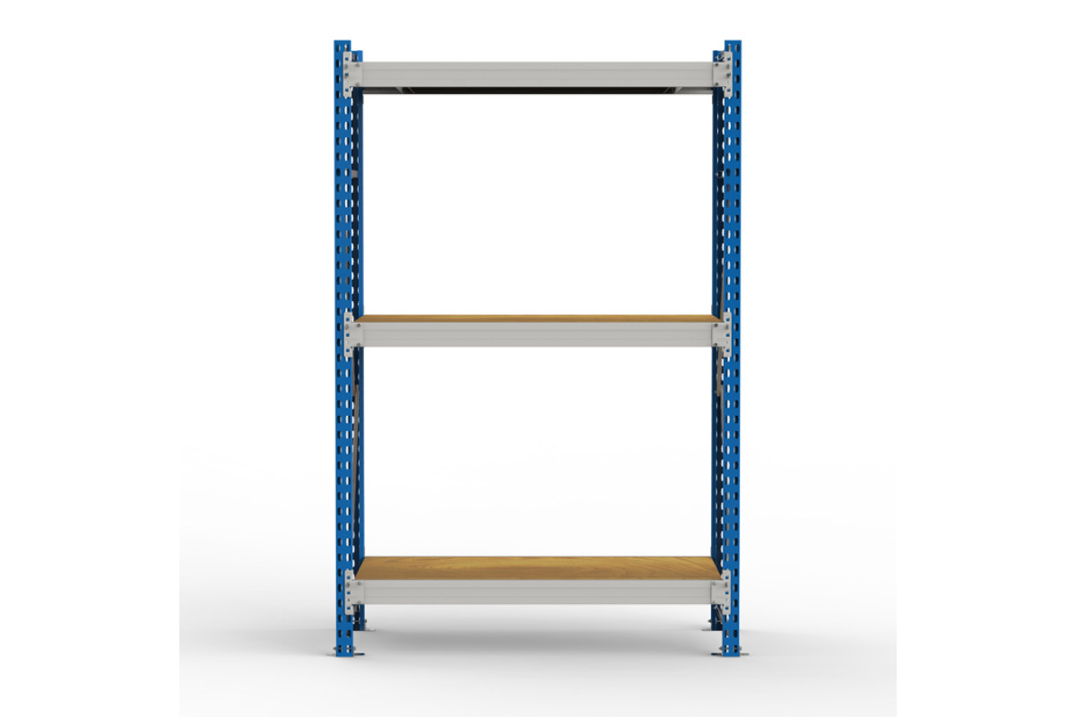 • Среднегрузовой стеллаж SGR-V-ДСП состоит из рам (сборная конструкция из двух стоек, соединенных горизонтальными и наклонными стяжками), продольных балок с креплением к стойкам на зацепах и настилов из ДСП, размещенных на продольных балках• Технология крепления балки к стойкам - безболтовая, на зацепах. Такой подход значительно уменьшает время сборки и установки стеллажа. Конструкция позволяет менять положение полок без демонтажа всей секции.• Ярус хранения включает в себя две продольные балки, соединенные между собой поперечными балками и настил из ДСП.• К раме стеллажа можно присоединить дополнительные секции на зацеп. Нагрузочные характеристики при добавлении доп.секций сохраняются• Допустимое минимальное количество ярусов хранения на каждую секцию - не менее трёх штук.• Для предотвращения случайного съёма балок яруса с рам предусмотрен фиксатор, устанавливаемый в конце сборки в прямоугольное отверстие каждого зацепа.• Каждая стойка снабжена металлическим подпятником на болтовом креплении.• Стеллаж комплектуется необходимой фурнитурой для сборки.• Стойки окрашены полимерной (порошковой) краской RAL 5015 синего цвета или RAL7035 светло-серого цвета, балки окрашены в RAL7035 светло-серого цвета.