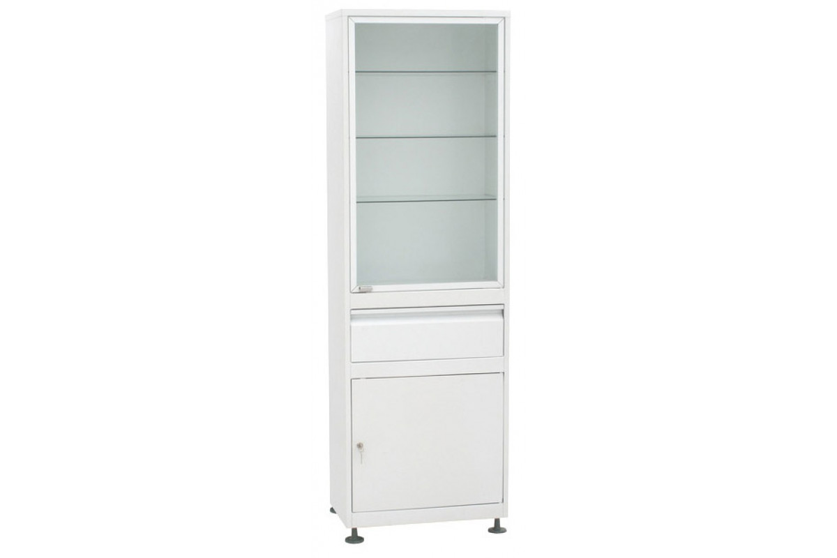 Шкаф 2-ух створчатый стекло/металл ШМС-2-Р-4/2 с регулируемыми опорами с выдвижным ящиком4/2
