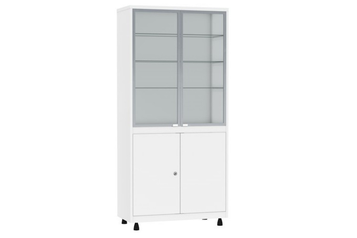 Шкаф 2-ух створчатый ШМС-2-А-Р стекло/металл в алюминиевой раме с регулируемыми опорами