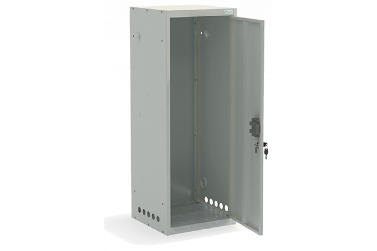 Шкафы серии ШГР изготавливаются из высококачественной конструкционной холоднокатаной стали. Металлический шкаф состоит из сборно-разборного корпуса и одной распашной двери. Корпус состоит из основания, усиленного оцинкованным настилом, крыши, двух боковых стенок и одной задней стенки. Сборка корпуса осуществляется на винтах и саморезах. Дополнительную жесткость основанию придает приварное ребро жесткости.Дверь шкафа имеет коробчатую конструкцию и так же усилена приварным, продольным ребром жесткости (одним или двумя в зависимости от модели шкафа). Ребро жесткости представляют собой сложно-катанный профиль, шириной 90 мм, высотой 15 мм, длина ребра жесткости зависит от модели шкафа.Каждая боковая стенка шкафа имеет одно специальное отверстие для газовой магистрали (шланга), диаметром 31.5 мм, расположенные в верхней части боковой стенке шкафа и пять отверстий для вентиляции, диаметром 31.5 мм, расположенные в нижней части боковой стенки. Нижние, вентиляционные отверстия нужны для предотвращения скоплений газа в случае утечки.В модели ШГР 50-1 дверь устанавливаются на внутренние, осевые петли, с диаметром оси не менее 5 мм, изготовленные из качественной, инструментальной стали и высокопрочного полиамида, которые обеспечивают бесшумное и плавное открытие двери на 110 градусов, ускоряют и облегчают процесс сборки шкафа. Долговечность крепления дверей, 40000 циклов открываний, в соответствии с требованием ГОСТ 16371-93.Каждый шкаф серии ШГР оснащен одним почтовым замком повышенной секретности (не менее 2000 комбинаций) и одной пластиковой евро-ручкой для пожарного шкафа (замок для пожарного шкафа). Почтовые замки неподвижно и прочно фиксируются на дверях, в соответствии с требованием ГОСТ 16371-93, и обеспечивают легкое отпирание и запирание. При необходимости, металлический шкаф ШГР комплектуется петлей под навесной замок.Шкафы серии ШГР имеют атмосферостойкое полимерное покрытие, полученное при использовании термоотверждаемых порошковых красок на полиэфирной основе. Фактура покрытия мелкая шагрень. Цвет светло-серый RAL 7035. Полимерное покрытие устойчиво к перепадам температур и влаги. Допускается эксплуатация щитов в температурных режимах окружающего воздуха от «+40»°С до «- 60»°С, при влажности до 85%.Шкафы серии ШГР выпускаются с полным комплектом фурнитуры, необходимой для хранения баллонов. Крепежные элементы крепятся к задней стенке шкафа, в уже имеющиеся отверстия Ф 6,5 мм, с помощью болтов М 6х16 и гайки М 6.В комплект фурнитуры входят самоклеющаяся наклейка «Осторожно Газ», размером 90х100 мм и 2 пластиковые заглушки, диаметром 32 мм.
