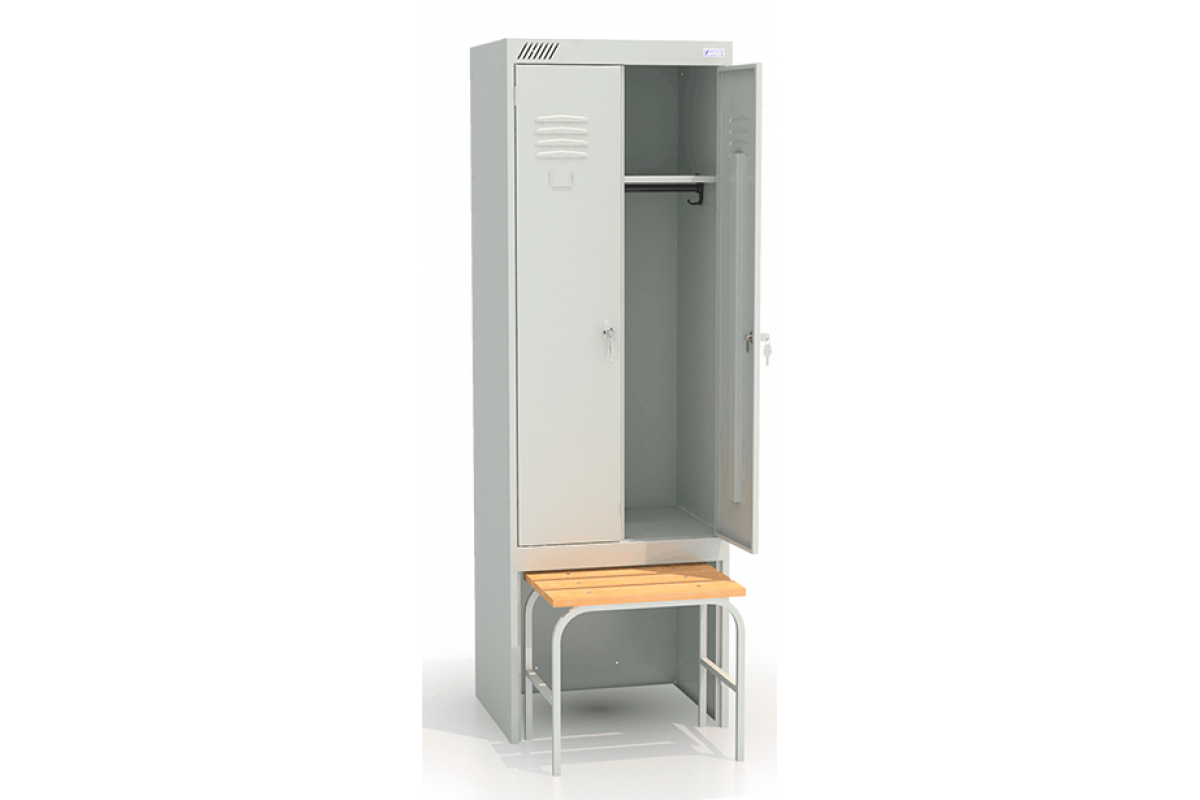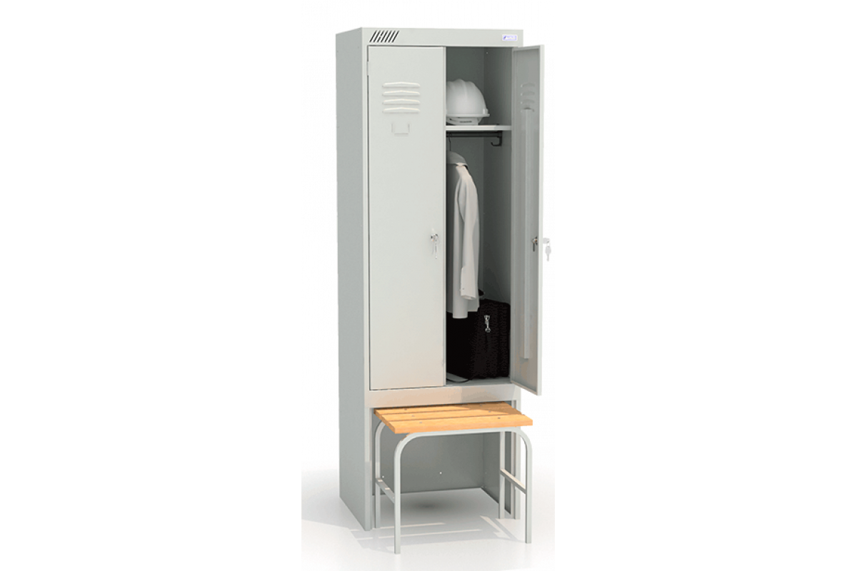 - Комплектуется двумя замками повышенной секретности, двумя полками под головные уборы, двумя перекладинами, четырьмя крючками.