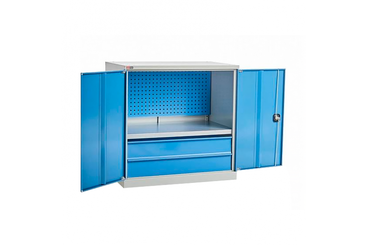 корпус, аксессуары — серый RAL 7038, дверцы, ящики и экраны — синий RAL 5012