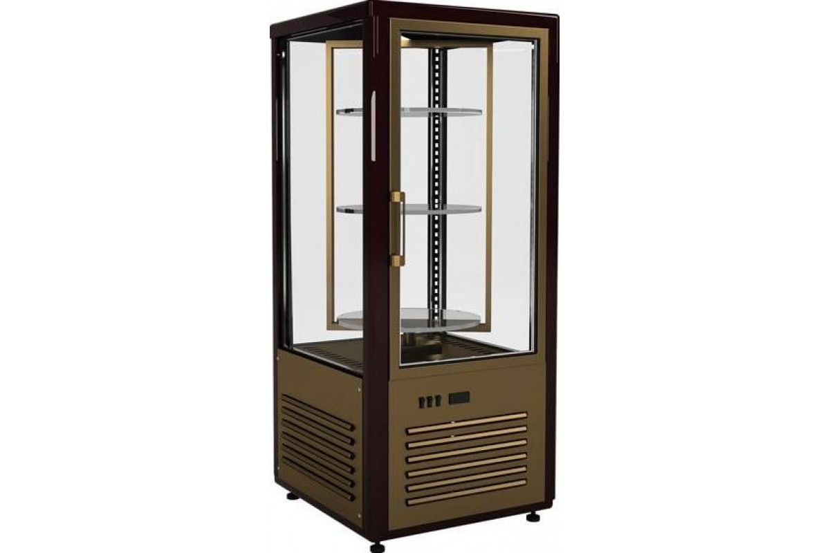Шкаф кондитерский Carboma D4 VM 120-2 (R120Свр) (0109-0102 (коричнево-золотой)) идеальный вариант для демонстрации кондитерских изделий, аппетитных сэндвичей и бутербродов, выпечки, пиццы и деликатесов в кафе, магазинах, барах и ресторанах. Стеклопакеты обеспечивают хорошую теплоизоляцию и обзор внутреннего объема со всех сторон.