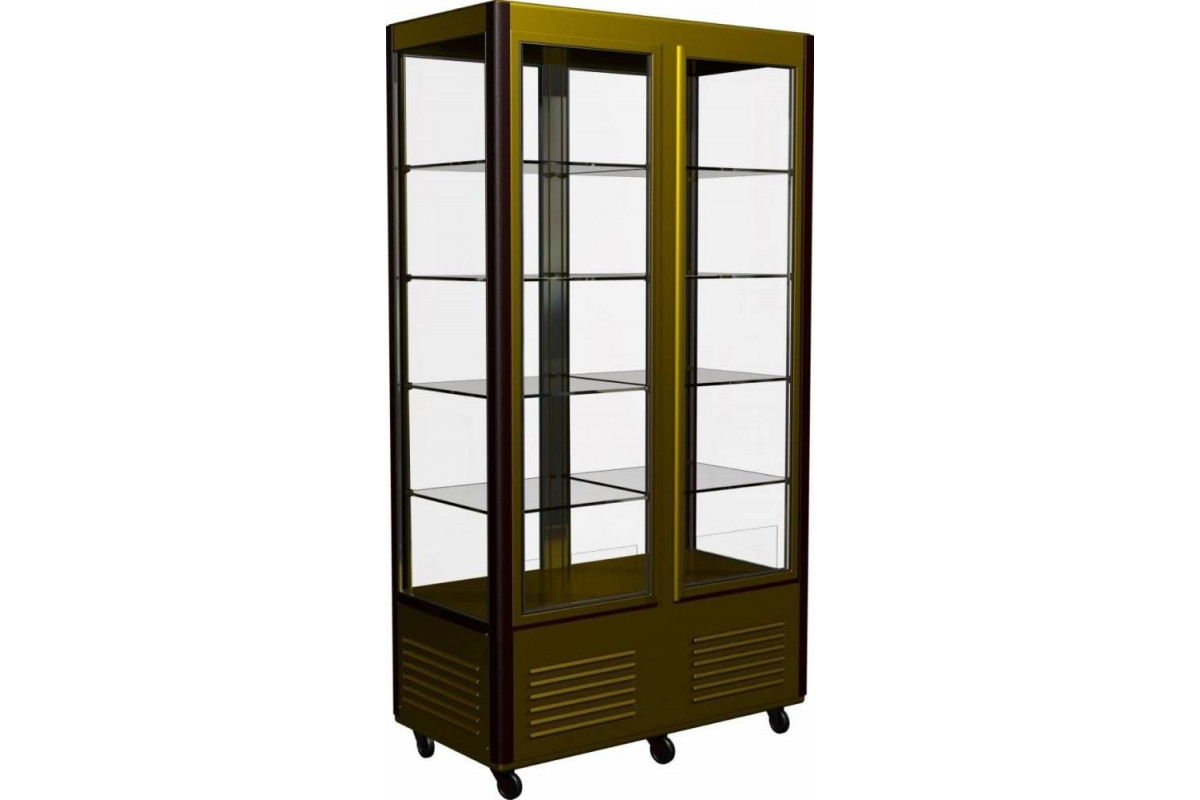 Шкаф кондитерский Carboma D4 VM 800-1 (R800C Сarboma Люкс) (0109-0102 (коричн-золот) 2 дв,стекл полк) предназначен для демонстрации кондитерских изделий, аппетитных сэндвичей и бутербродов, выпечки, пиццы и деликатесов в кафе, магазинах, барах и ресторанах. Стеклопакеты обеспечивают хорошую теплоизоляцию и обзор внутреннего объема со всех сторон.