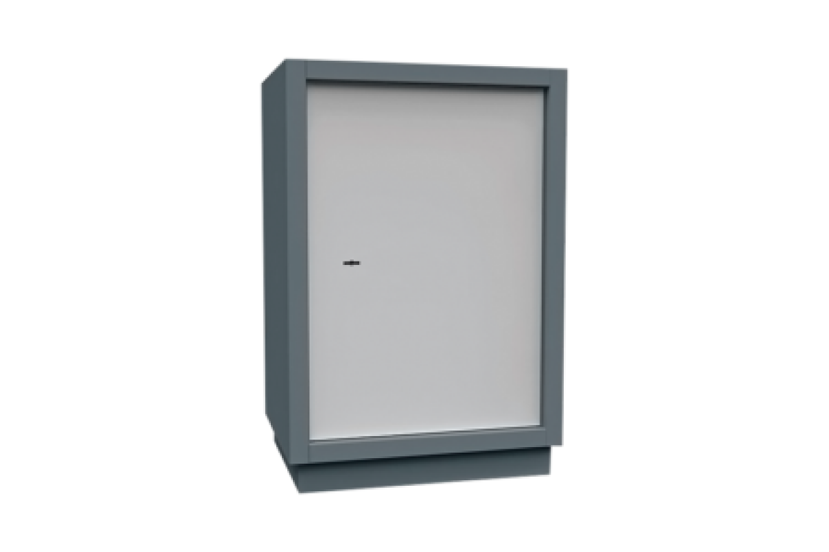 Вся линейка бухгалтерских шкафов окрашена в два цвета: корпус – RAL 7011, дверь — RAL7035.