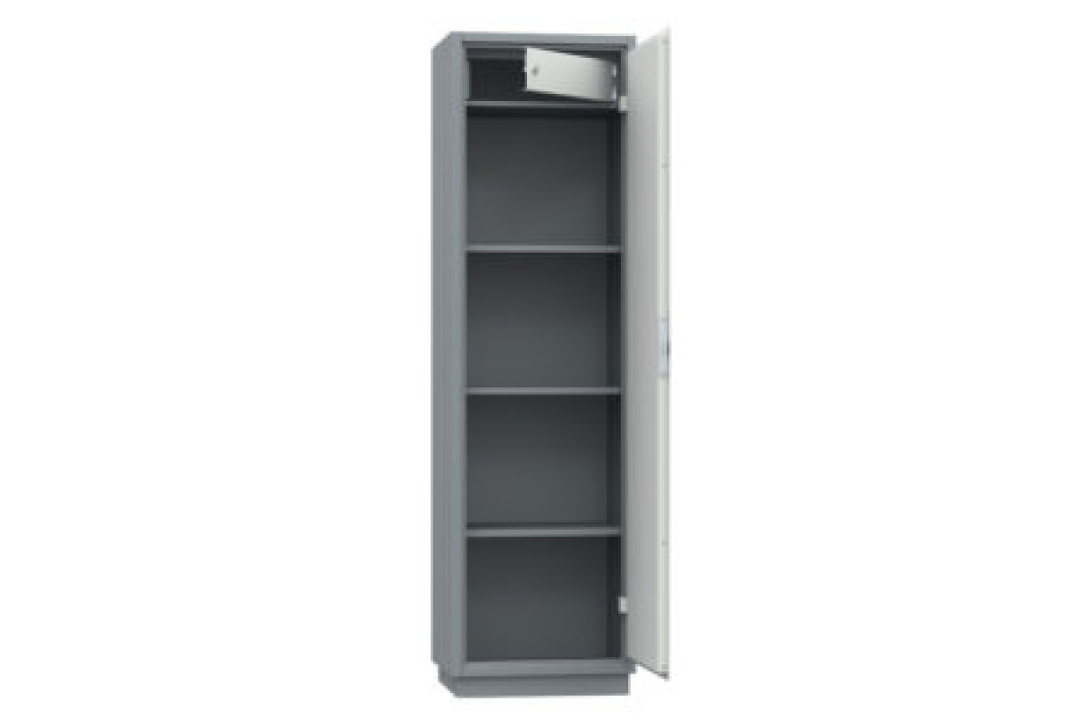 Вся линейка бухгалтерских шкафов окрашена в два цвета: корпус – RAL 7011 (благородный темно-серый), дверь — RAL7035 (светло-серый).