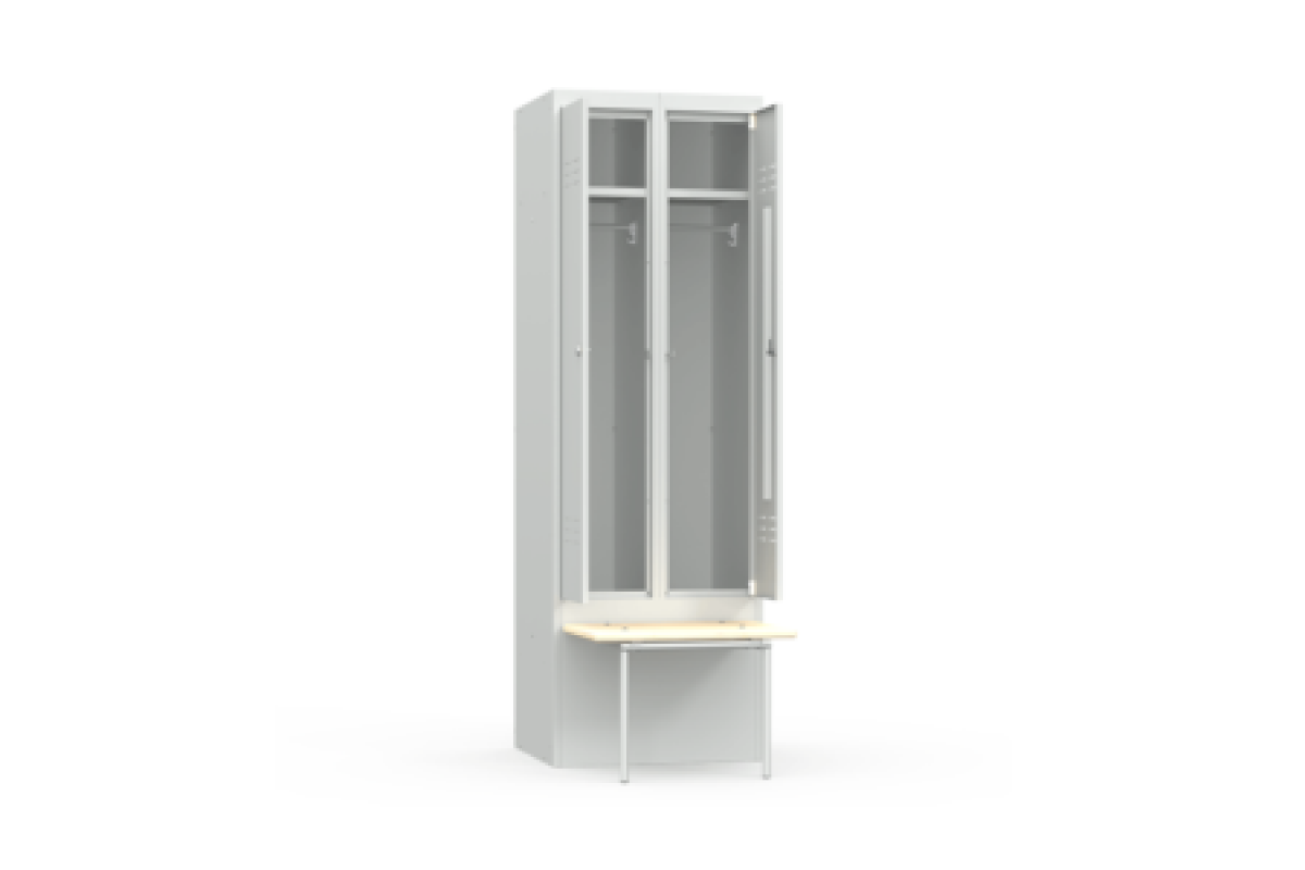 двухсекционный металлический шкаф для одежды;