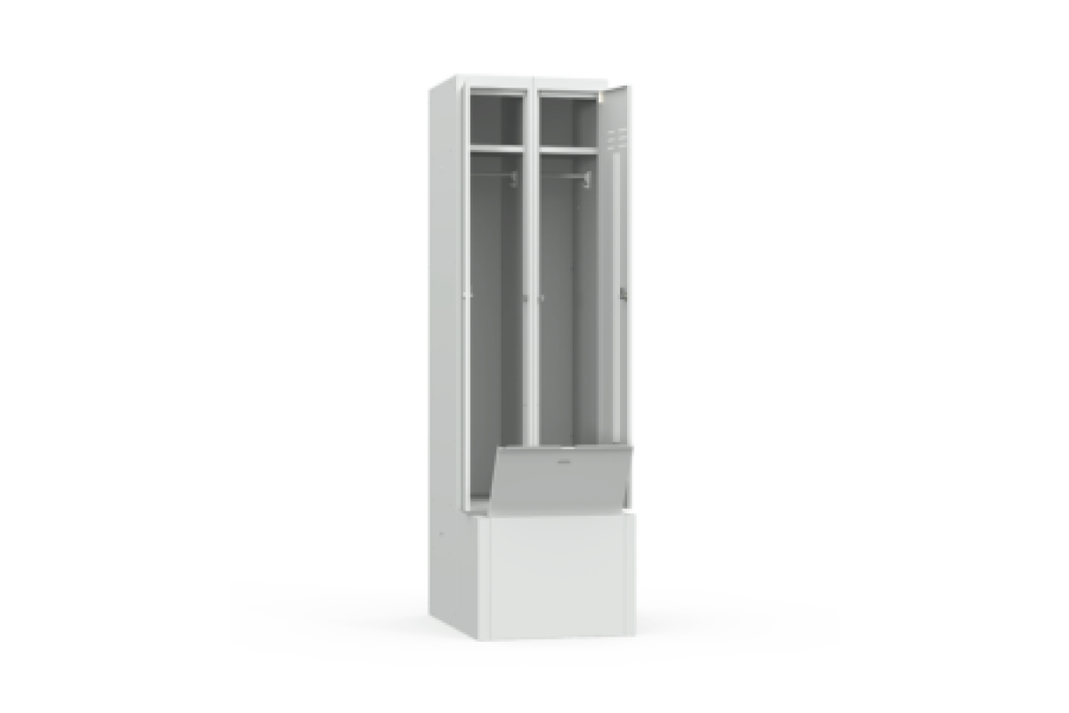 Шкаф металлический для одежды серии ШР-22 L600 Т с дополнительной тумбой предназначен для хранения одежды в офисных и подсобных помещениях, общественных и государственных учреждениях, спортивных раздевалках.