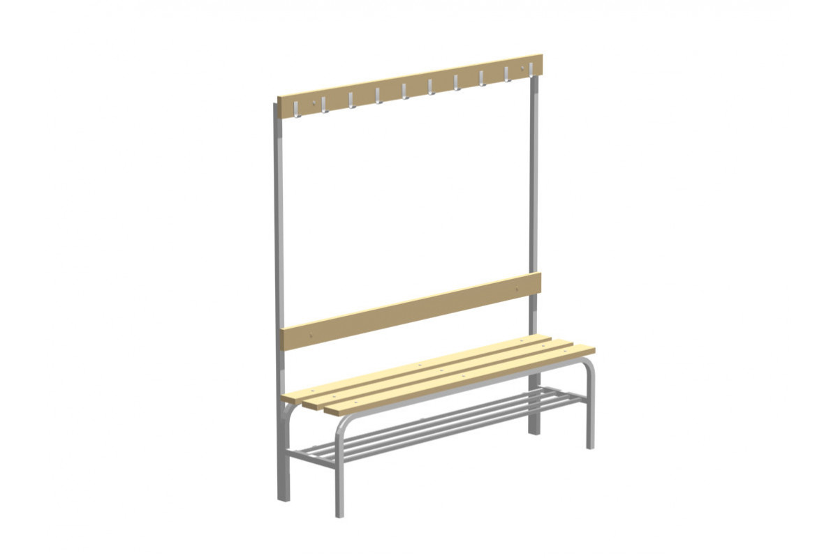 Скамья гардеробная двусторонняя с вешалкой и полкой под головные уборы С-1500 Липа