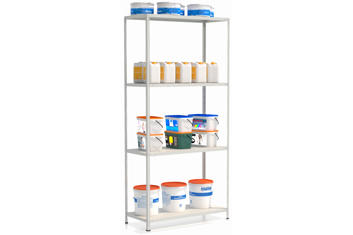 • Стойки и полки окрашены полимерной (порошковой) краской RAL 7035 светло-серого цвета.