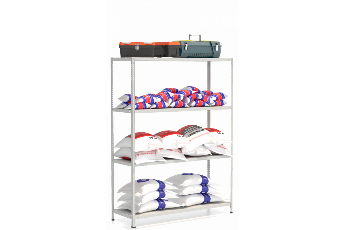 • Максимальная равномерно распределенная нагрузка на каждую полку длиной 700 мм составляет 150 кг; длиной от 1000 до 1200 мм не должна превышать 125-145 кг, при длине полки свыше 1200 мм максимальная равномерно распределенная нагрузка на каждую полку не более 100 кг.