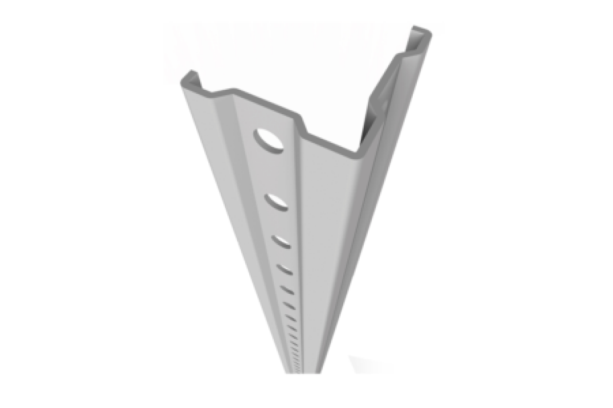 Стойка стеллажная профилированная серии СТ-СП с фигурным профилем, изготовлена из высокопрочной стали повышенной толщины.