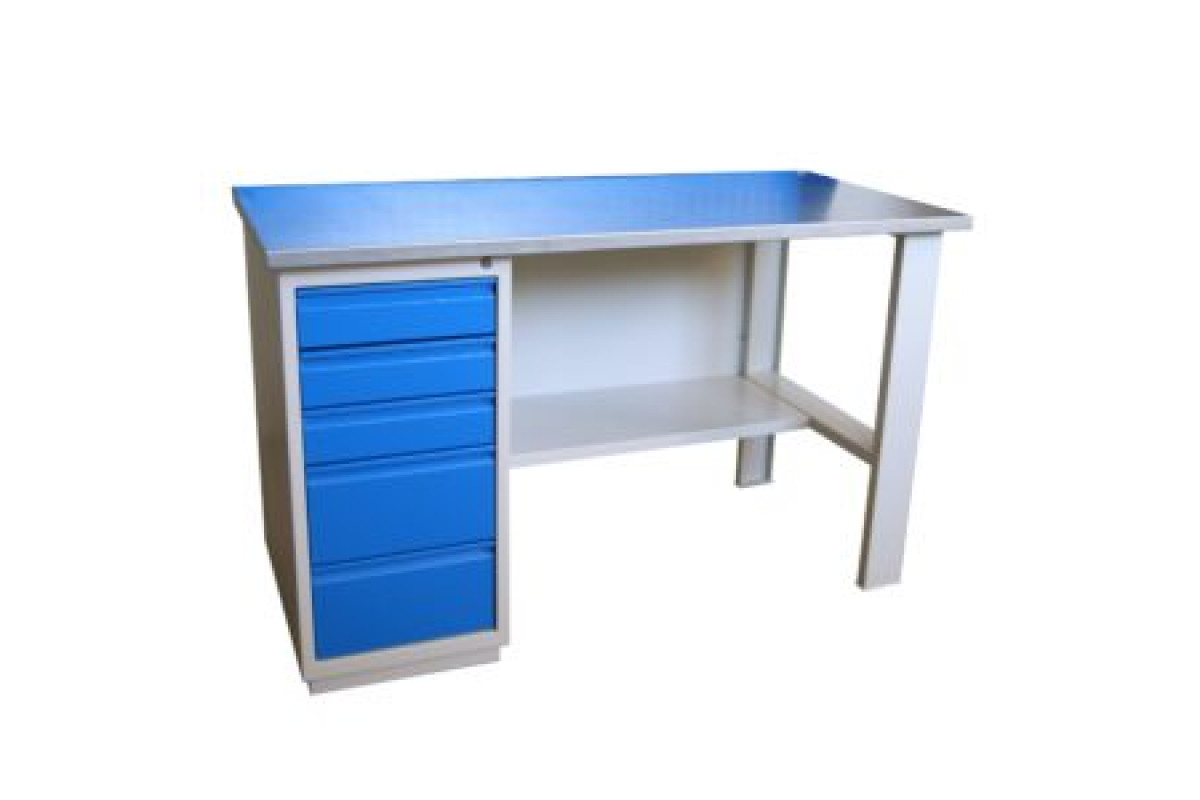 Верстак изготовлен из листовой холоднокатаной стали толщиной не менее 1 мм.