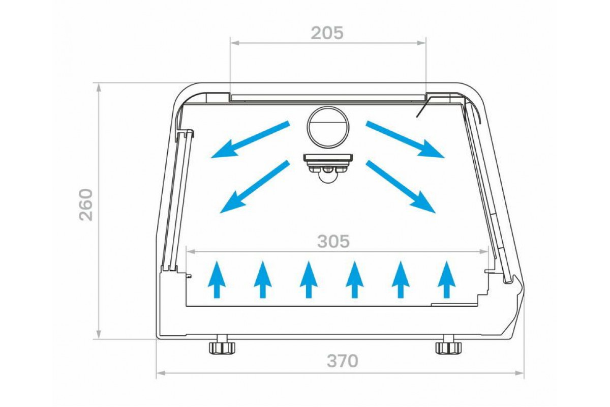 - Два испарителя, в нижней и верхней части витрины, обеспечивают равномерное распределение холода;