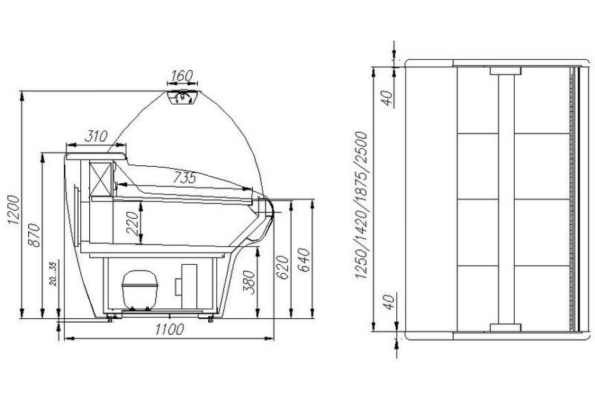 - Витрина предназначена для эксплуатации в закрытом помещении с естественной вентиляцией при температуре окружающей среды от +12 до +25 и относительной влажности не более 60%.