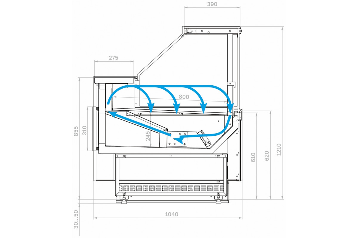- Экспозиционная поверхность и столешница изготовлены из шлифованной нержавеющей стали;