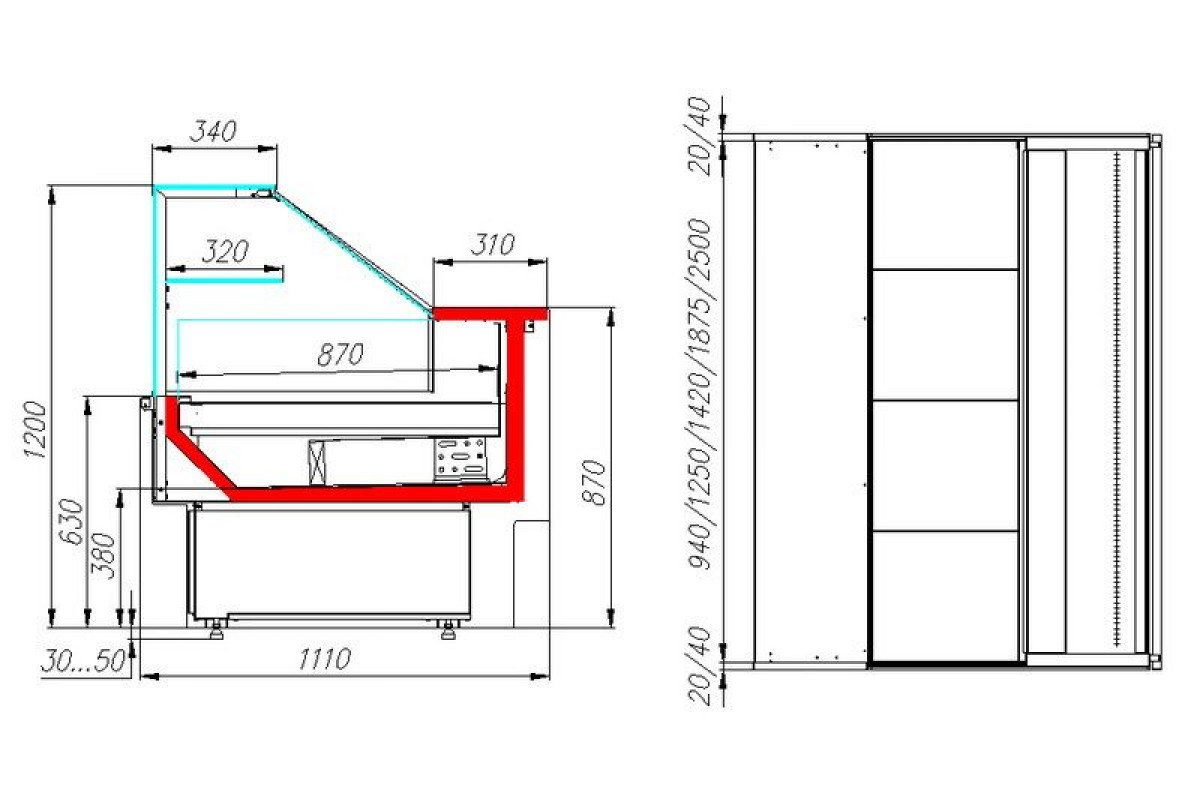 - Глубина выкладки 870 мм + одна неохлаждаемая полка 320 мм;