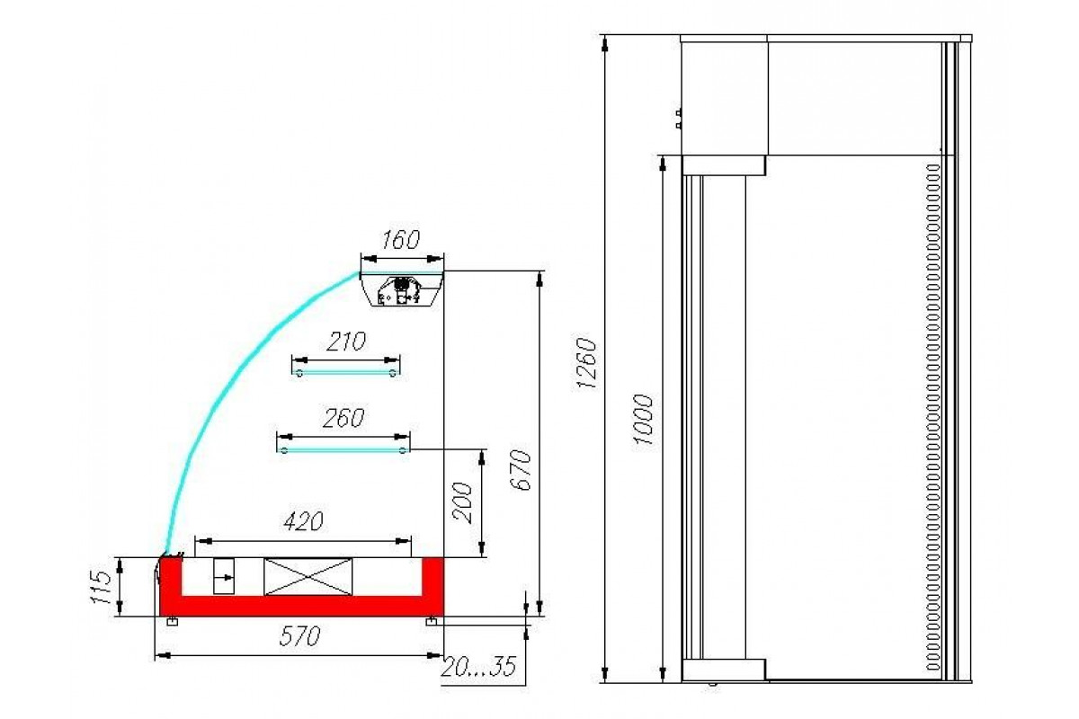 - Глубина выкладки 420 мм + 2 стеклянные полки 210 мм и 260 мм;