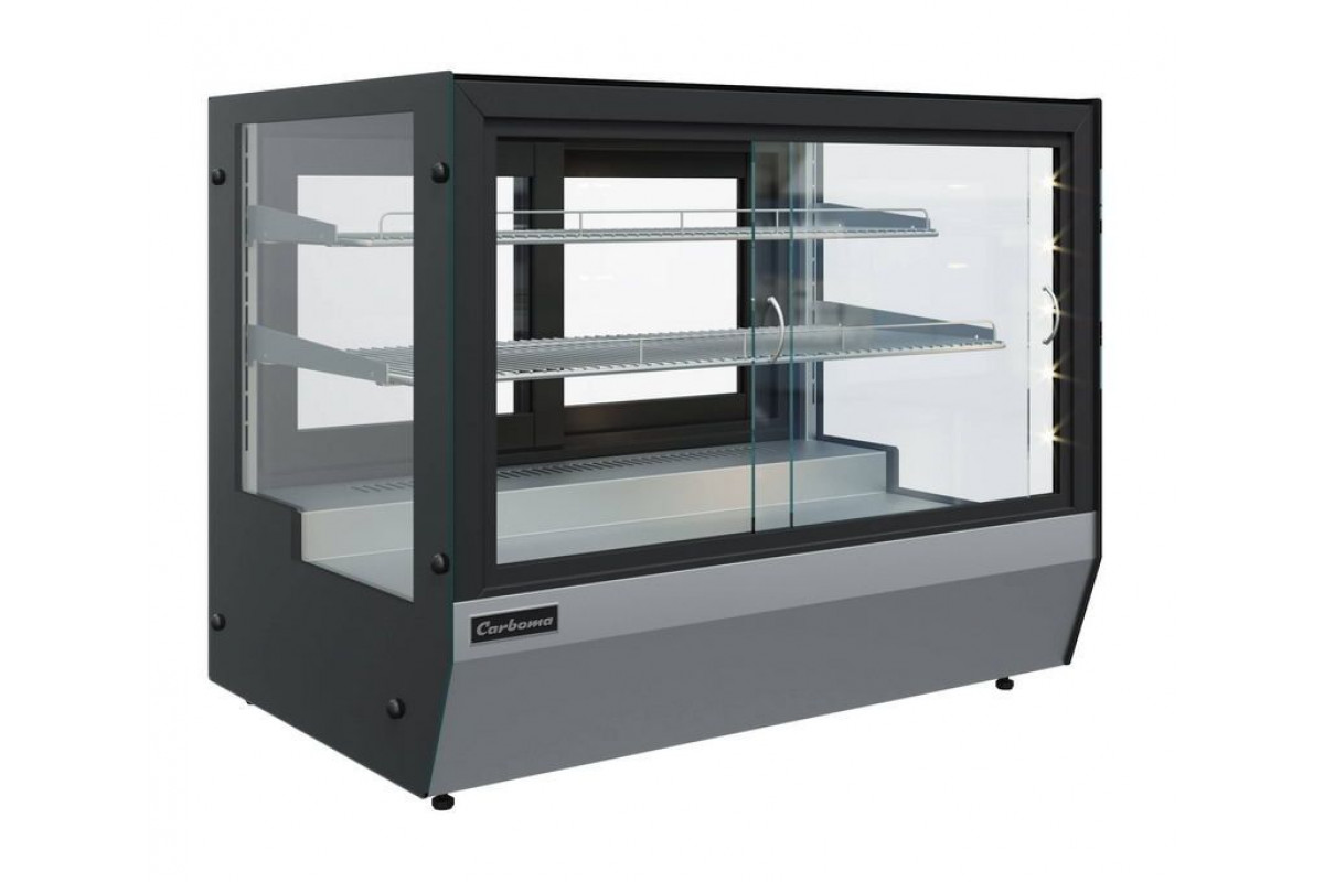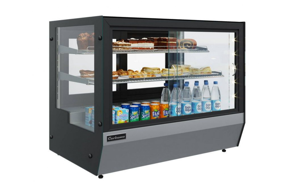 Витрина холодильная настольная Carboma AC59 VM 0,9-1 (слайдер, фронт стандартный цвет) компактная, мобильная витрина идеальна для небольших кафе, баров с большой проходимостью, когда требуется снизить нагрузку обслуживающего персонала. Витрина оснащена раздвижными створками-слайдерами с двух сторон - со стороны покупателя для самообслуживания и со стороны продавца - для удобства загрузки товара. Современный, стильный кубический дизайн. Стабильный температурный режим, благодаря динамическому охлаждению и наличию стеклопакетов.