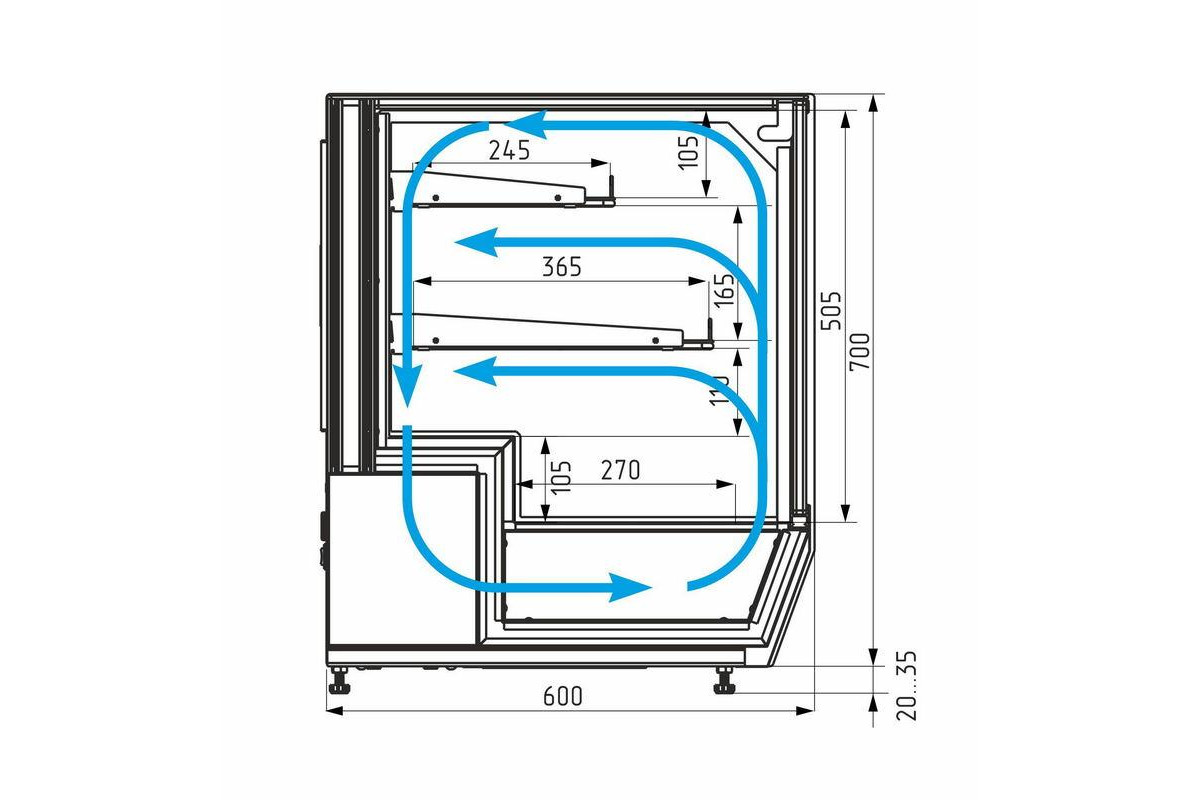 - Витрина должна быть установлена не ближе 2 м от отопительных приборов. Запрещается эксплуатация витрины при попадании на нее прямых солнечных лучей, воздушных потоков от кондиционеров, вентиляторов и обогревателей;