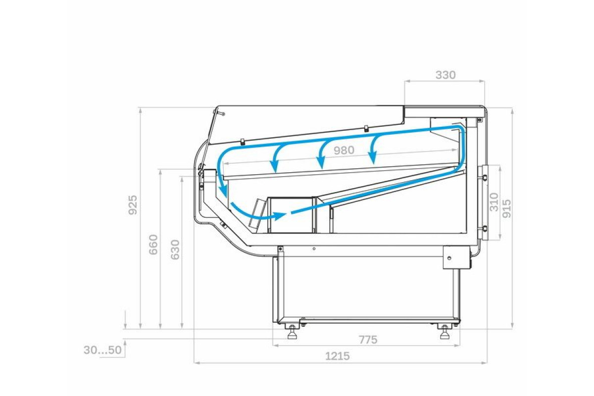 Диапазон регулировки опорных ножек, мм: 30-50