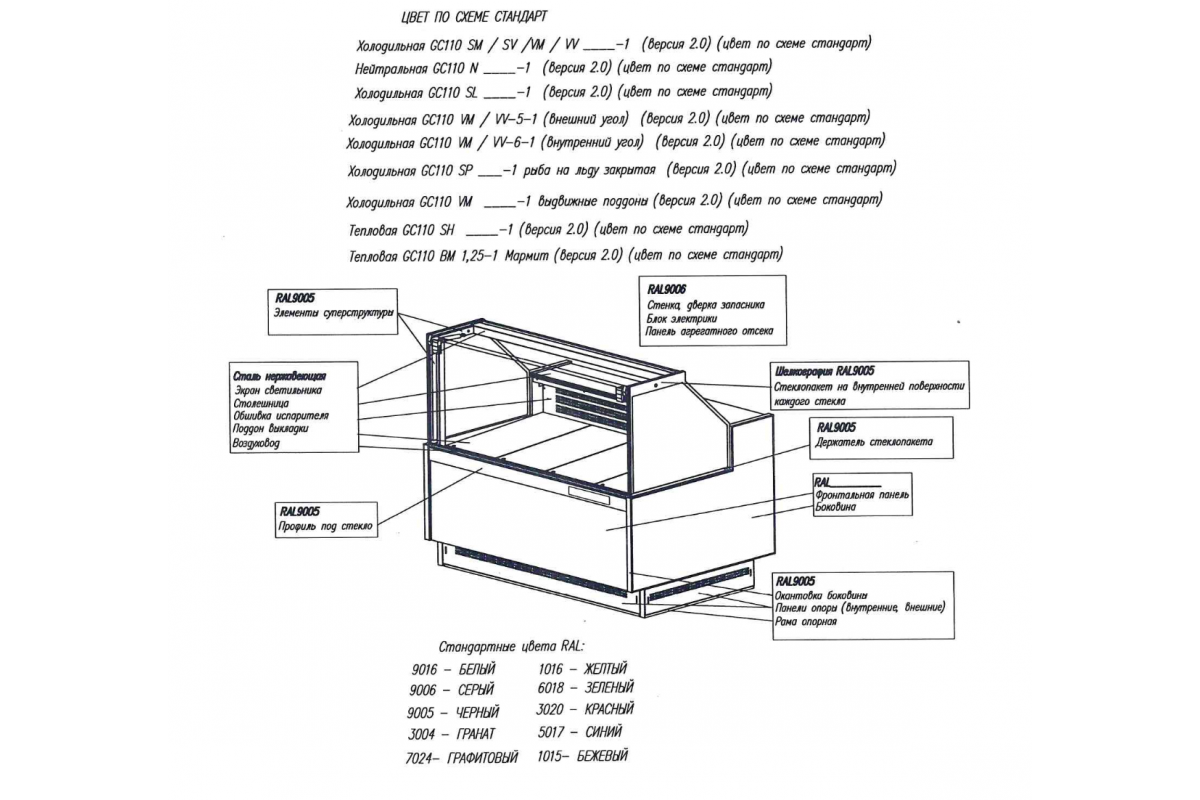 - Витрина холодильная Carboma GC110 SM 0,94-1 (без боковин) (версия 2.0) цвет по схеме стандарт.