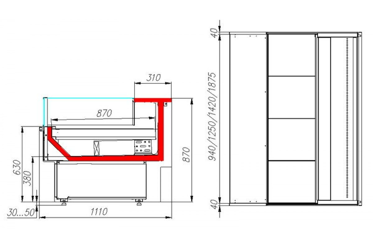 - Глубина выкладки 870 мм;