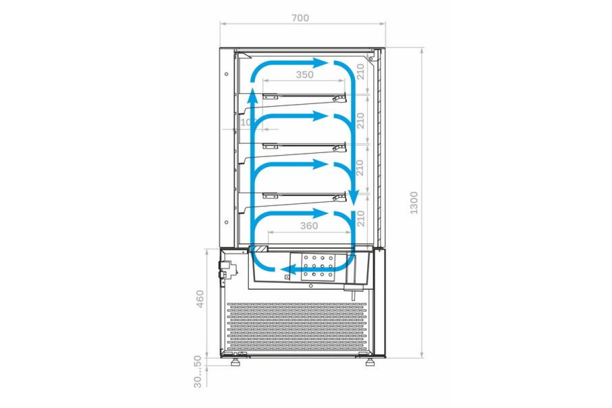 - глубина выкладки – 36 см + 3 полки 35 см;