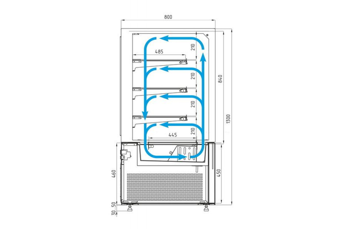 - Глубина выкладки – 44,5 см + 4 полки по 48,5 см;