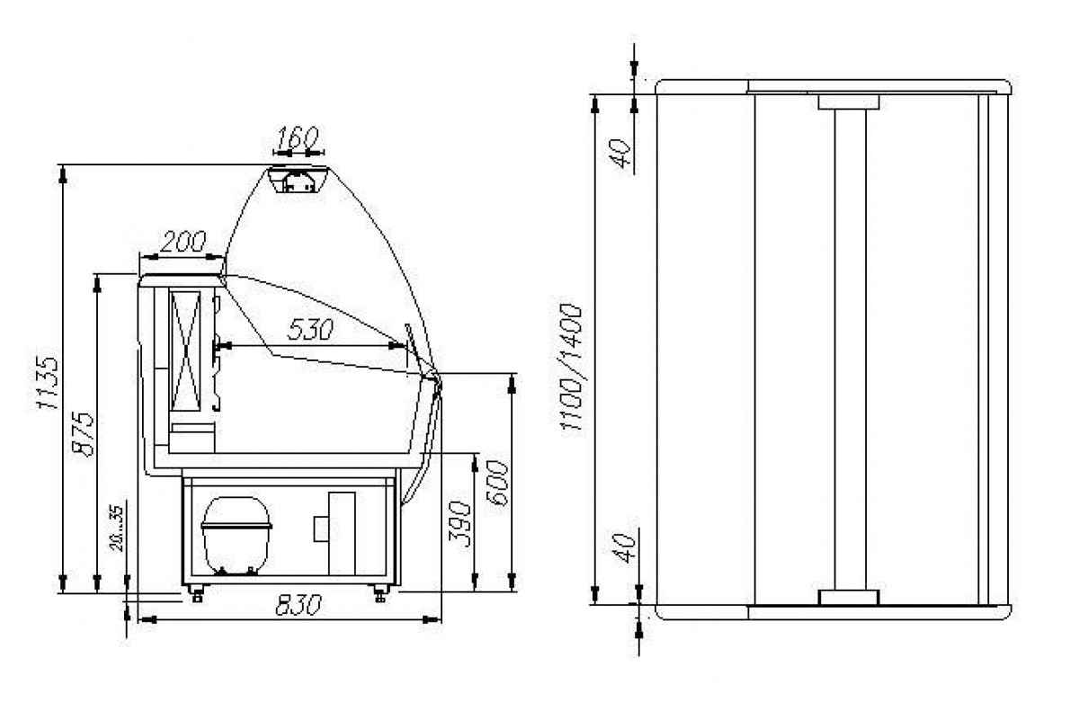Особенности: Витрина в стандартной комплектации без боковин, они заказываются отдельно, фиксируемое фронтальное стекло, отбойник холода