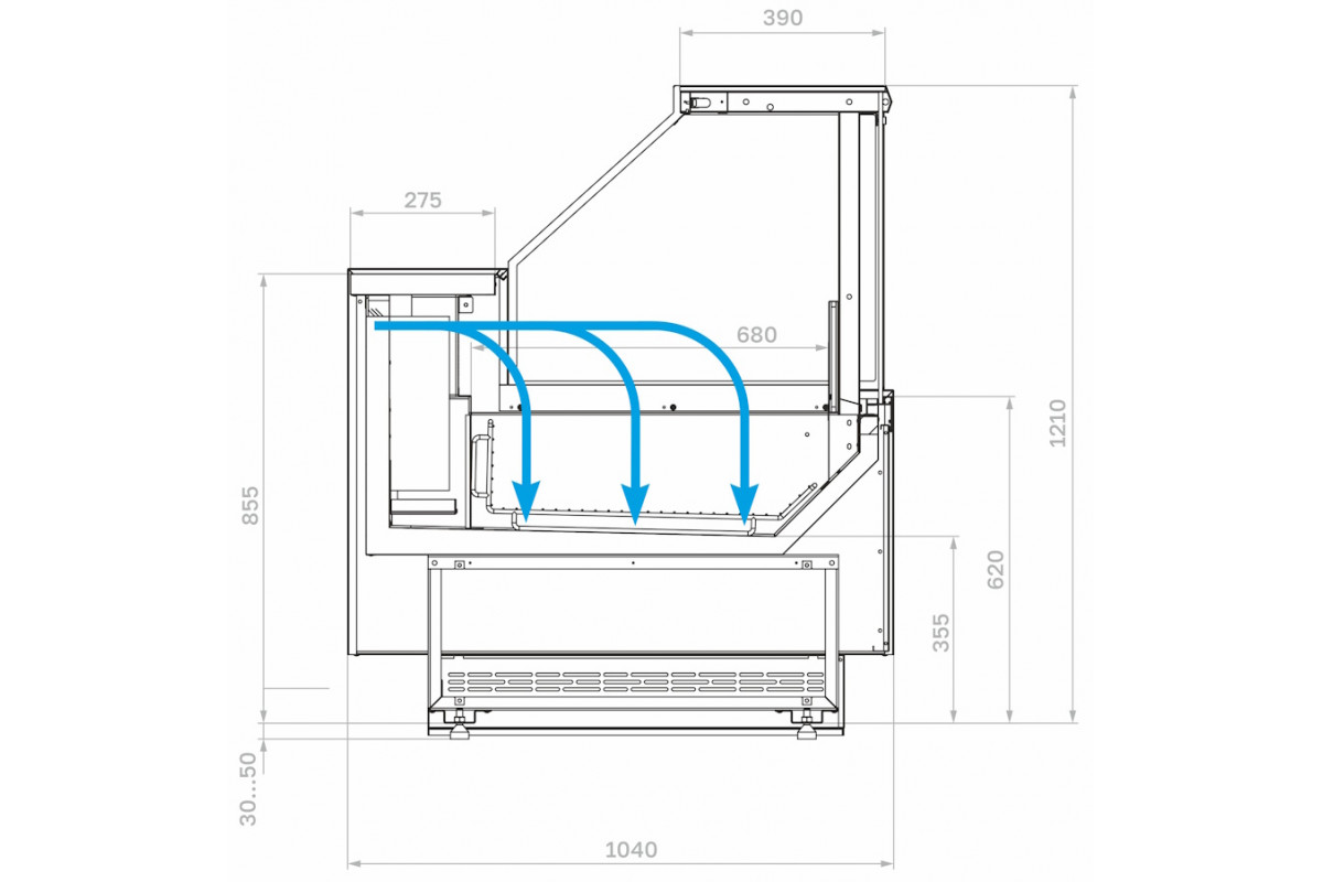 - Экспозиционная поверхность и столешница изготовлены из шлифованной нержавеющей стали;