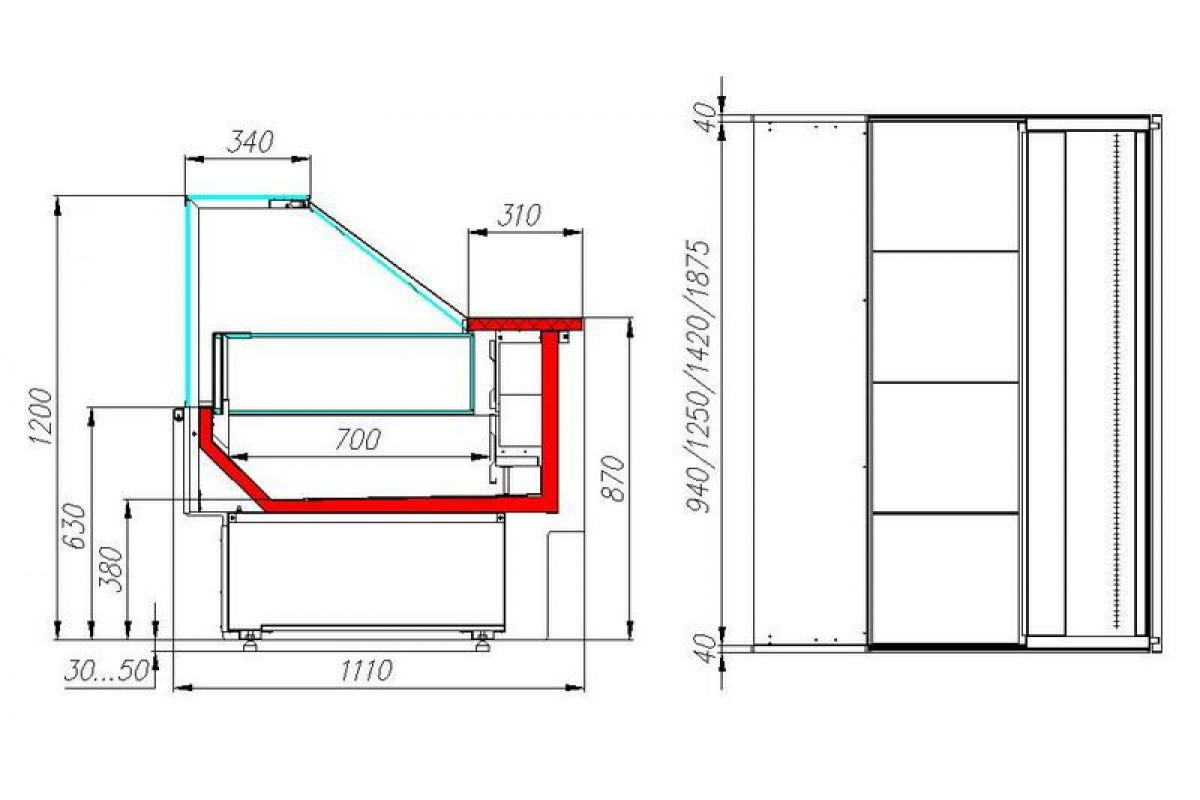 - глубина выкладки — 700мм;