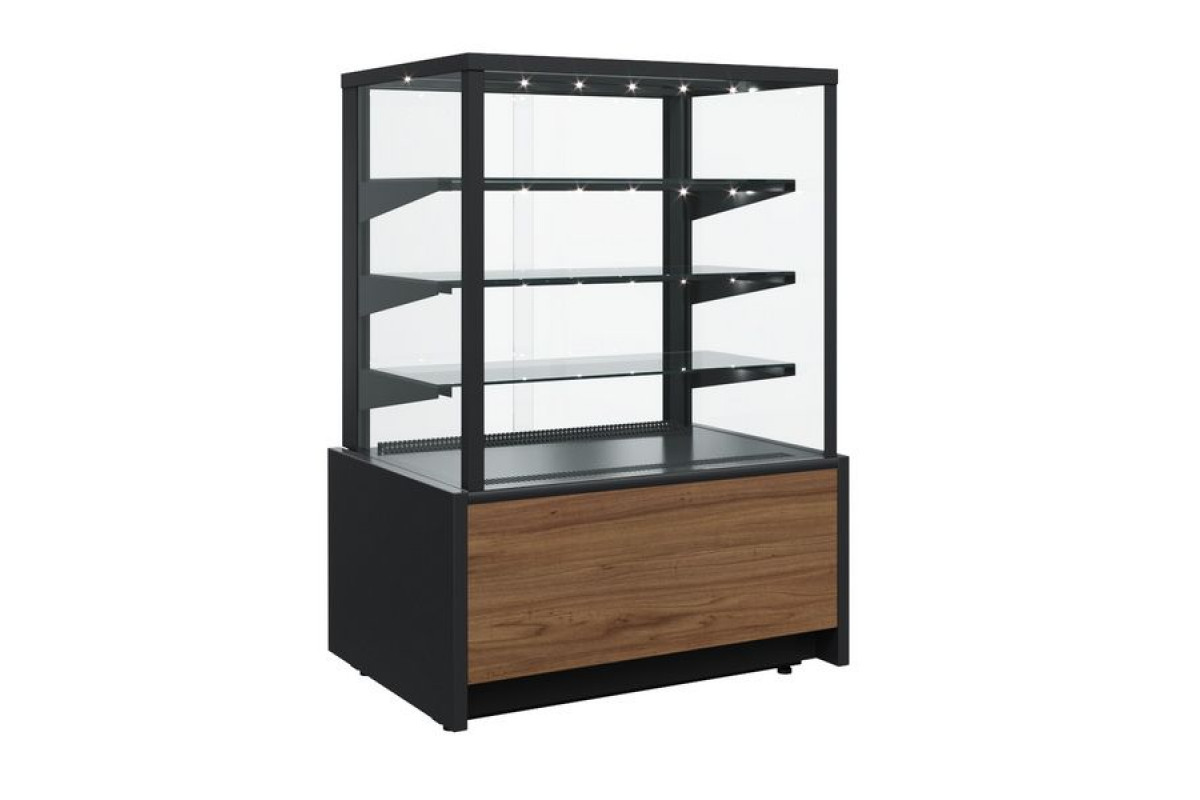 Витрина нейтральная напольная Carboma KC70 N 0,9-1 LIGHT Паттерн (0105 Венге) современное оформление торговых пространств. Кубический дизайн, подсветка каждой полки, многообразие цветовой палитры сделают интерьер привлекательным. Подходит для демонстрации пирожных, выпечки, пиццы, хлеба. Благодаря наличию в витрине защитных металлических стоек, закрывающих соединение стекол, рекомендуется устанавливать в зонах высокой проходимости покупателей и риском повреждения витрины сумками и чемоданами.
