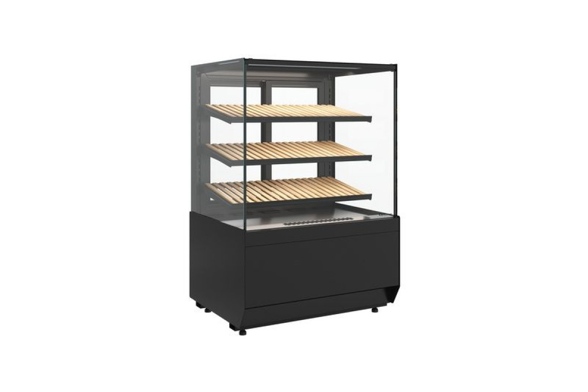 Витрина нейтральная напольная Carboma KC70 N 1,3-1 LIGHT Bread версия 2.0 (9005) используется на предприятиях общественного питания и торговли для демонстрации, хранения и продажи хлебобулочных изделий. Модель оснащена прямыми фронтальным и боковыми стеклами без металлических рамок, обеспечивающими улучшенный обзор продукции, и задними створками-слайдерами со встроенной ручкой.